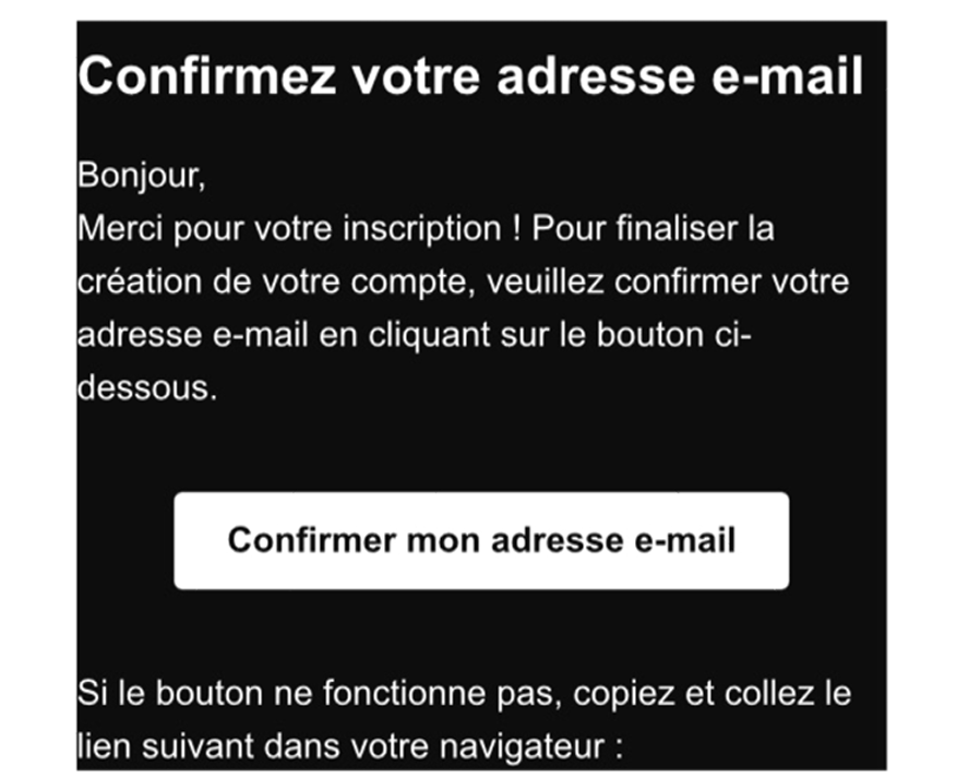 Vous avez maintenant reçu un e-mail de confirmation de votre compte.